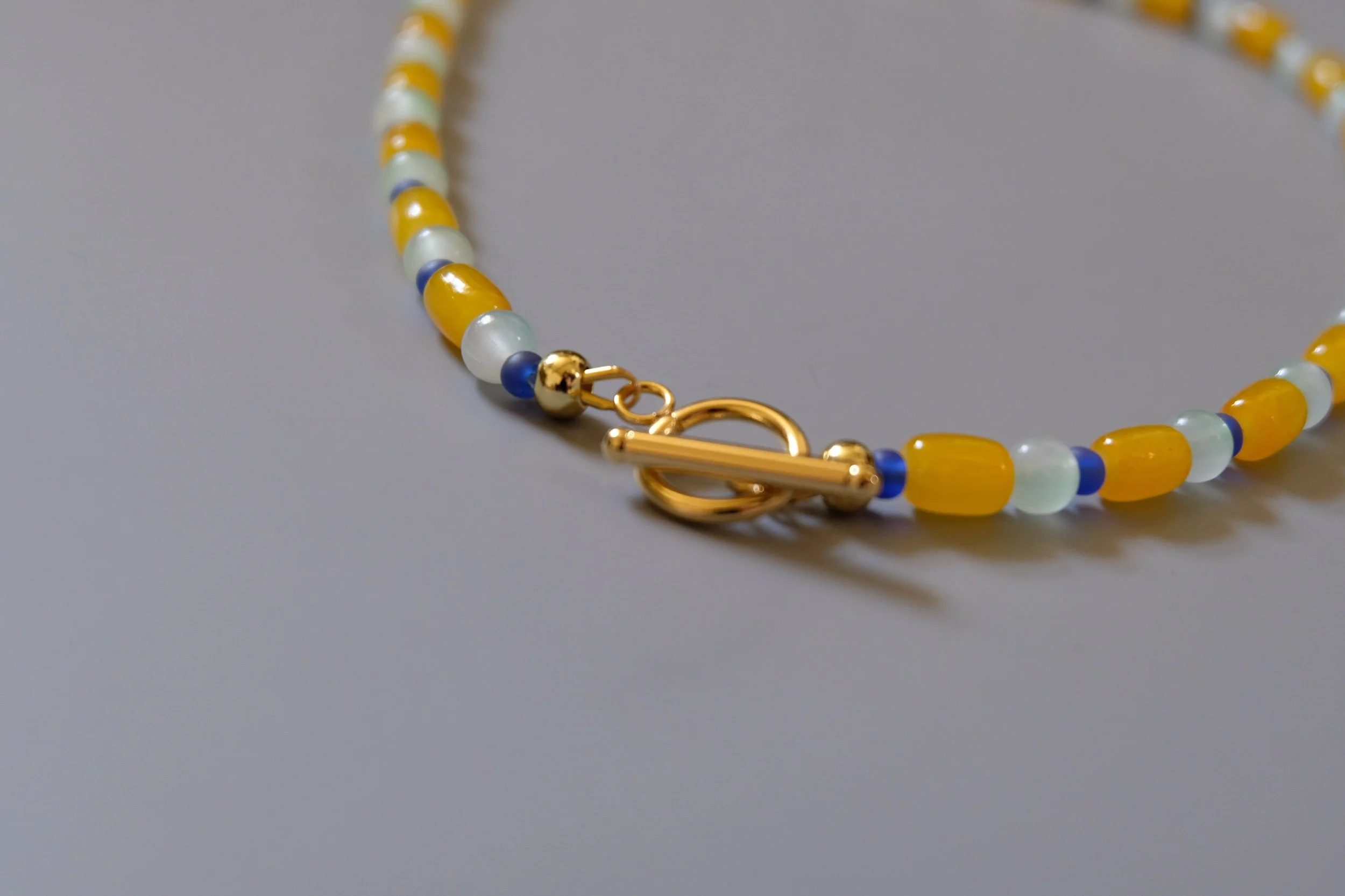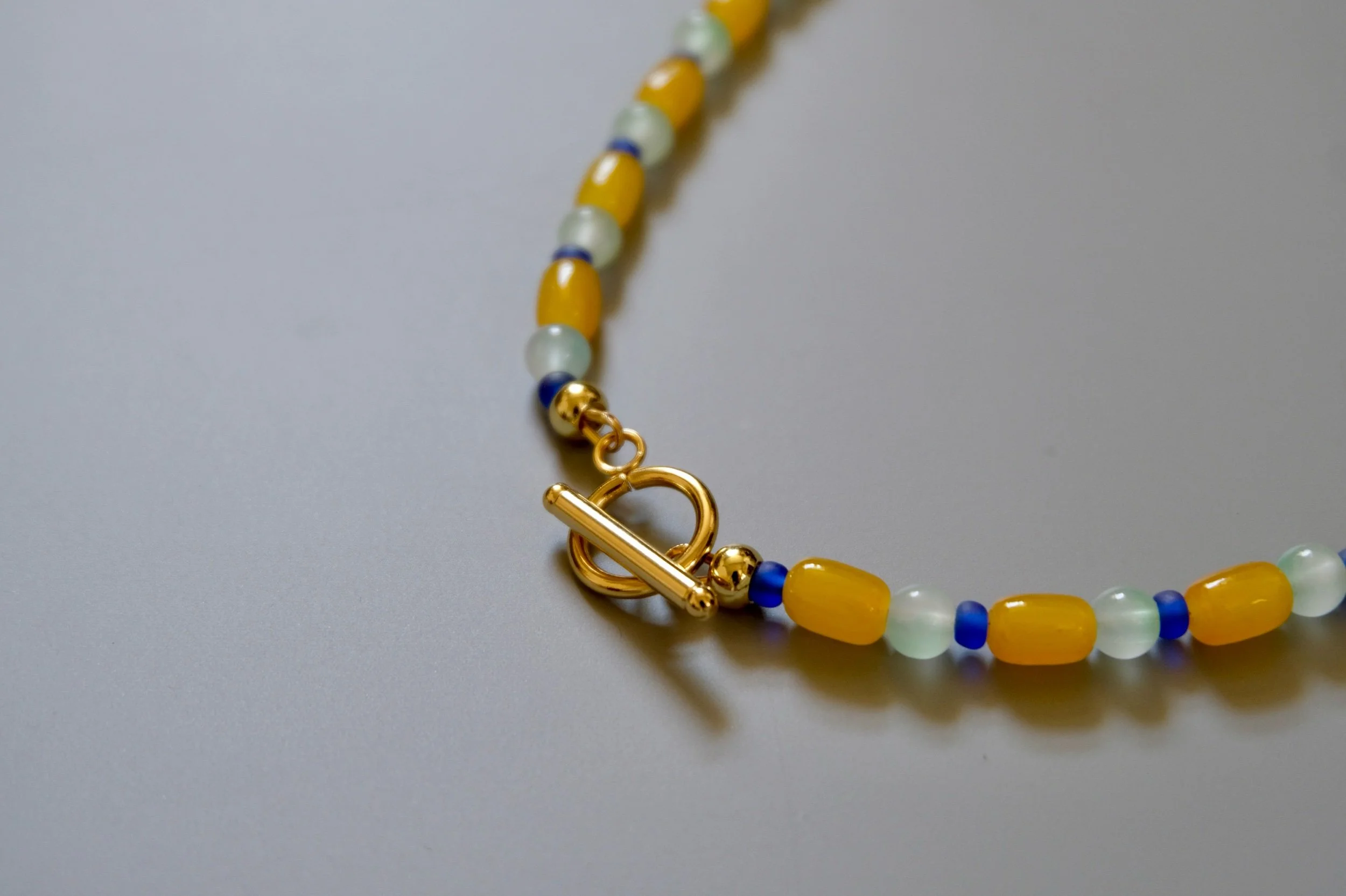Yellow, blue and aqua beaded necklace