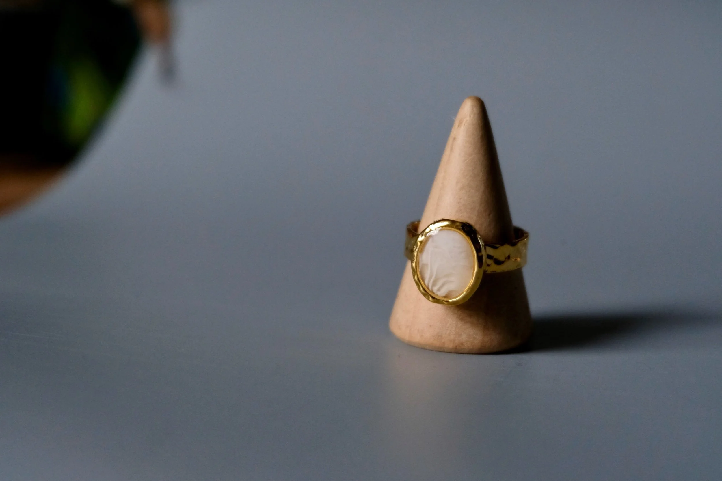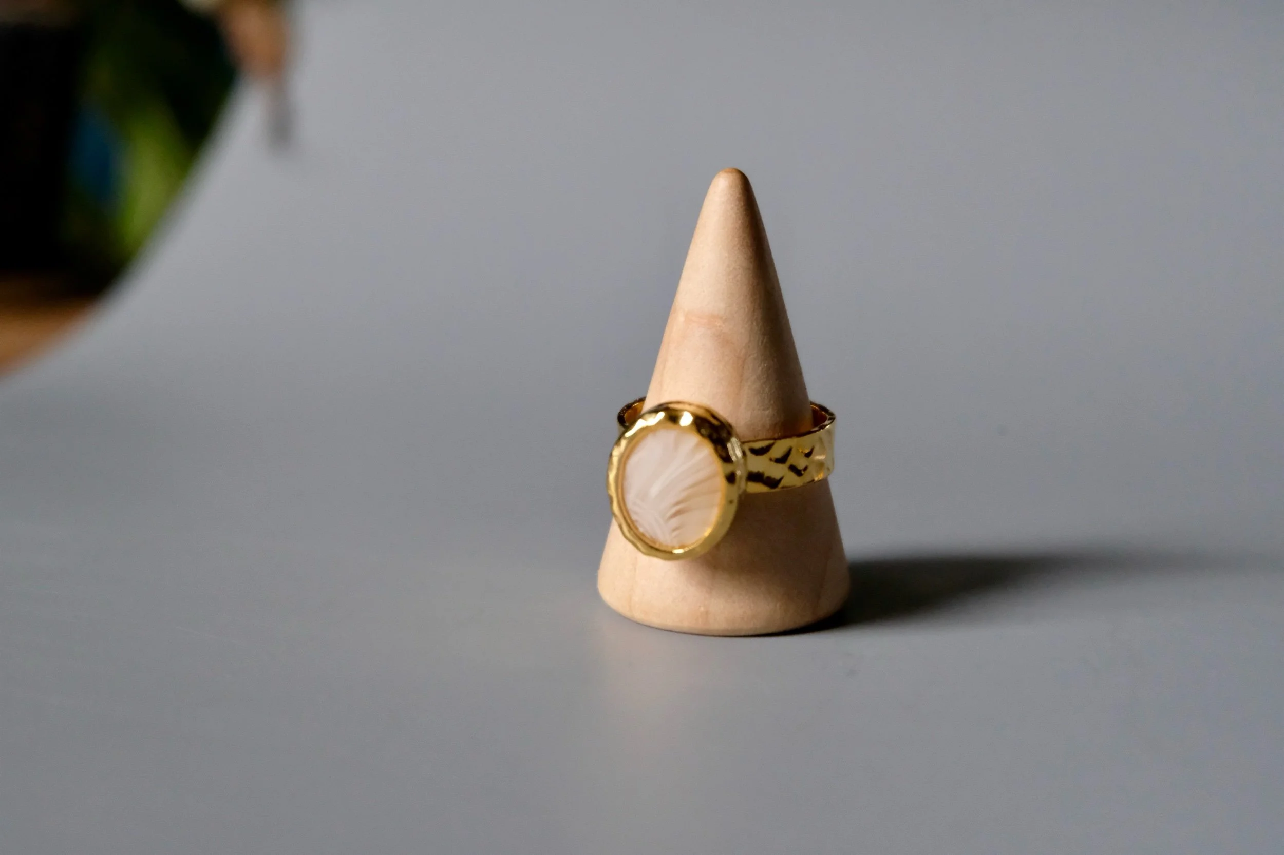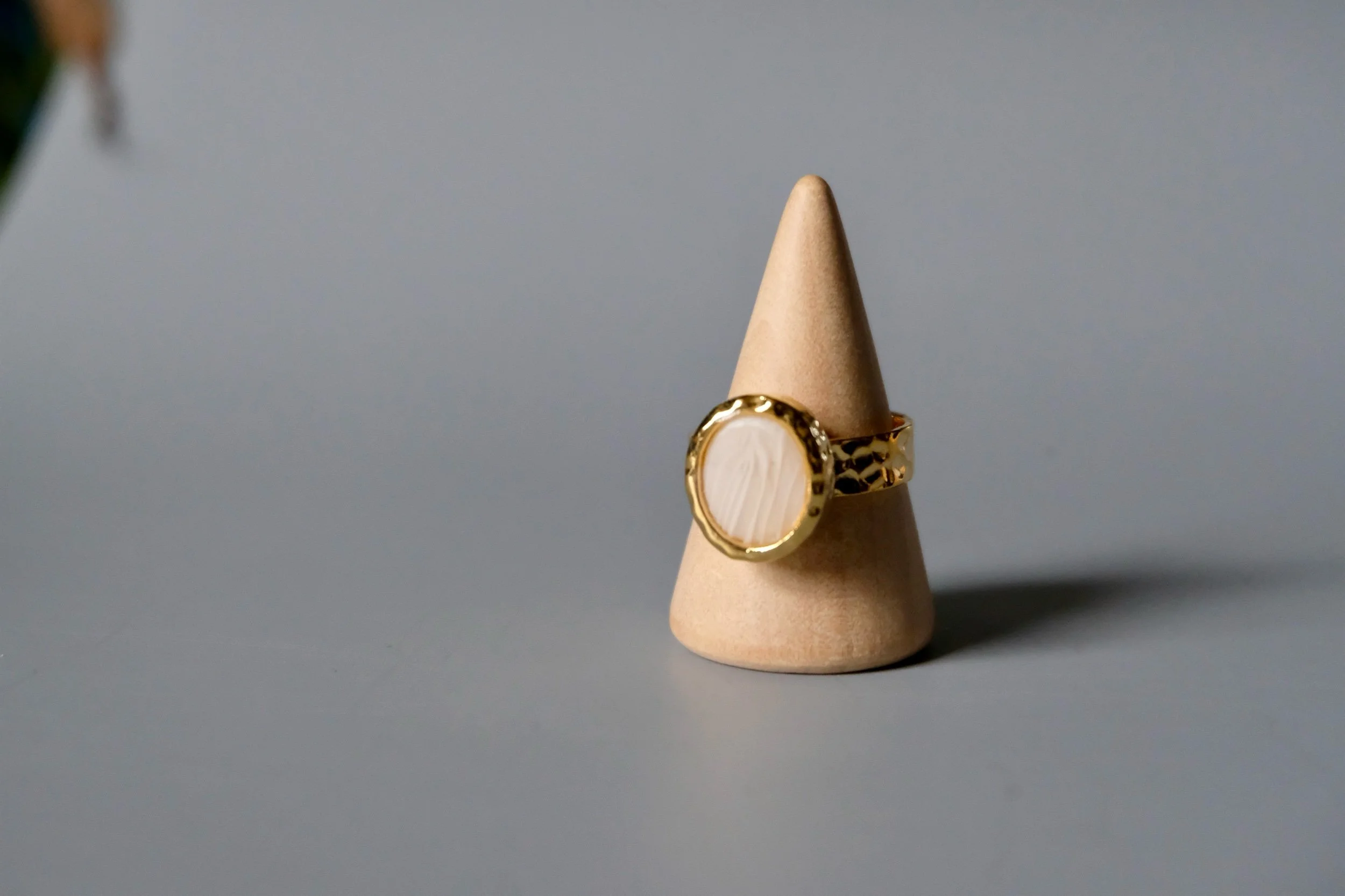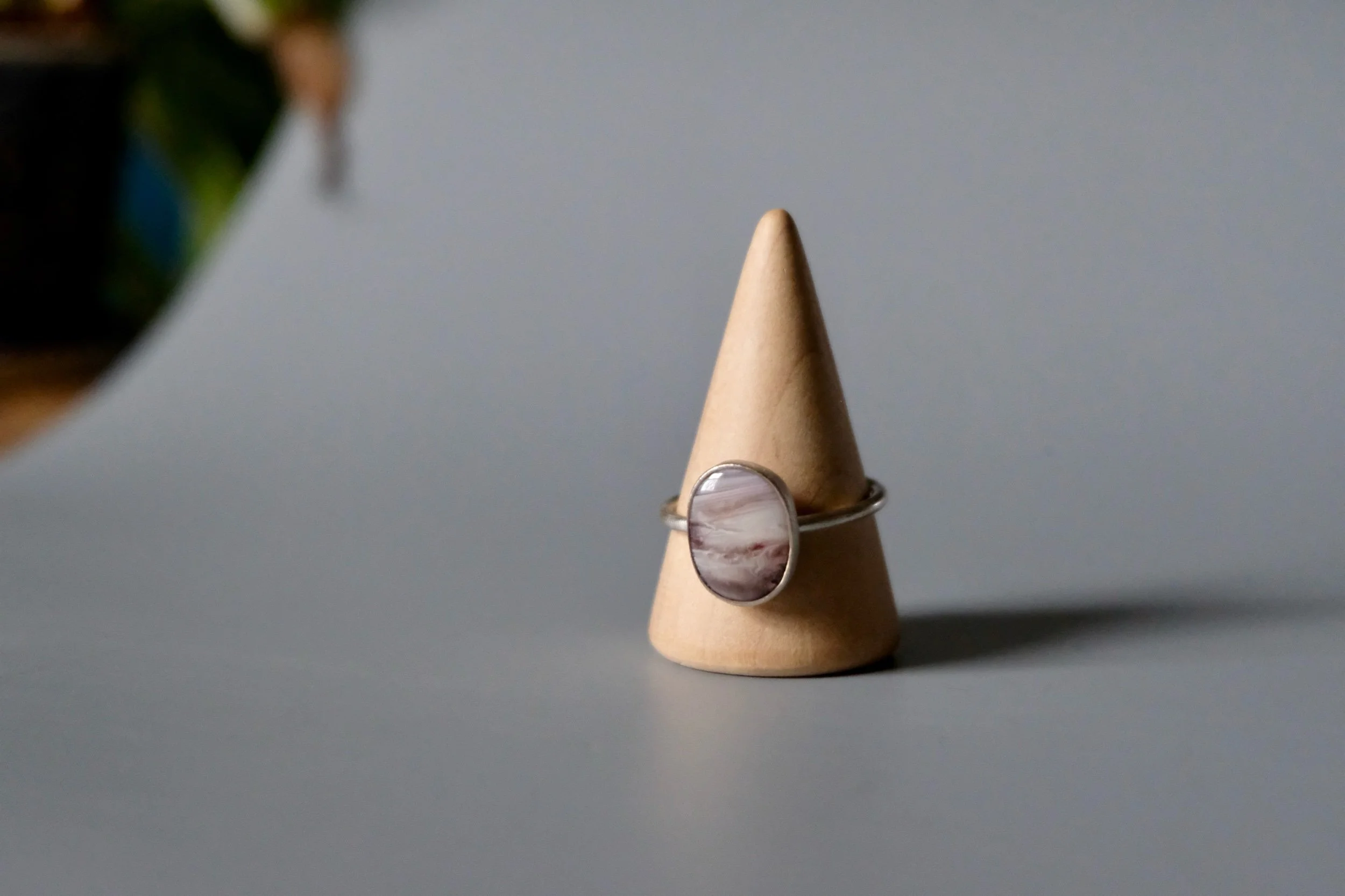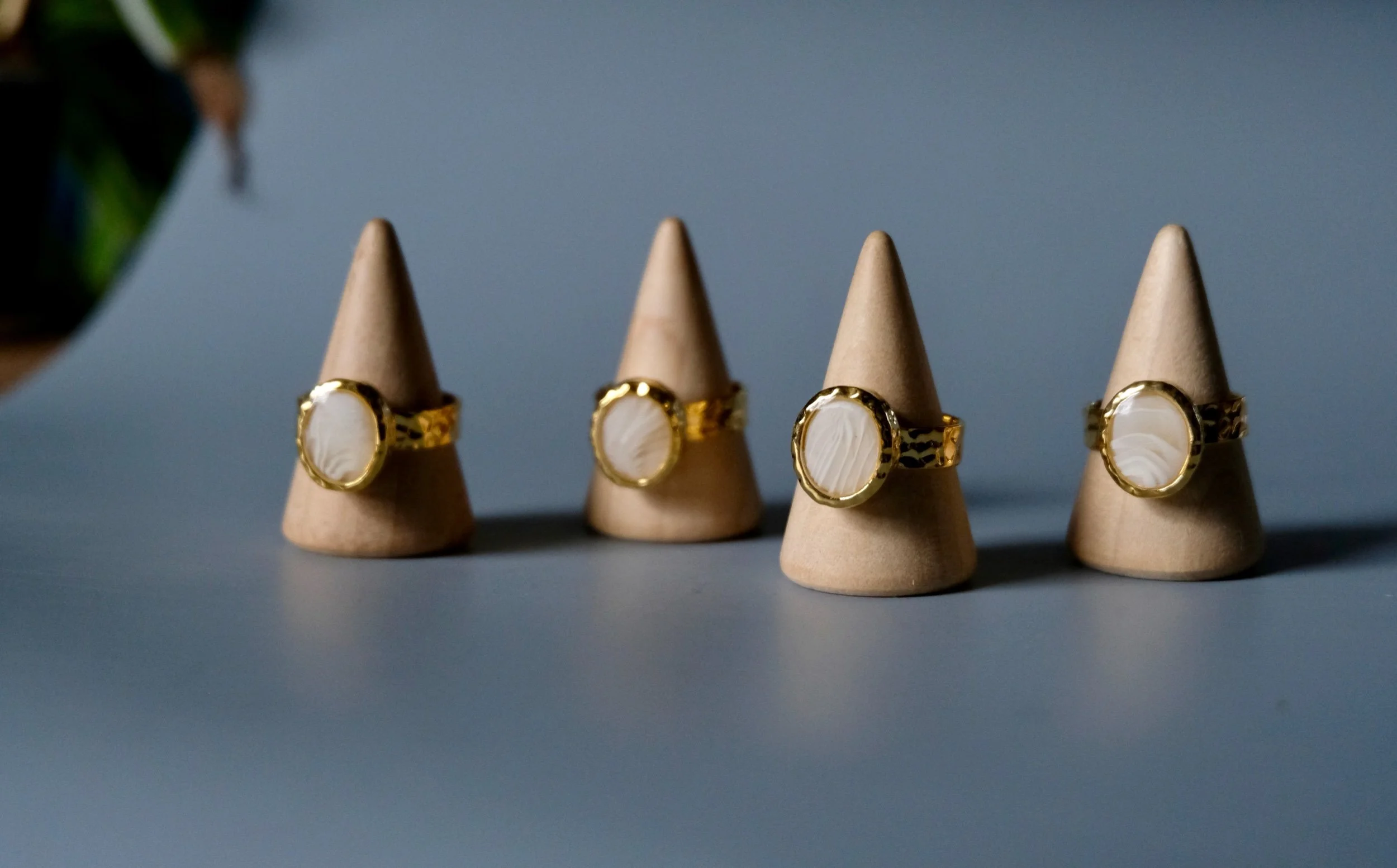 This adjustable ring features a unique polymer clay insert in an open bezel and finished with UV resin. Lightweight, durable and the adjustable band ensures a comfortable fit.