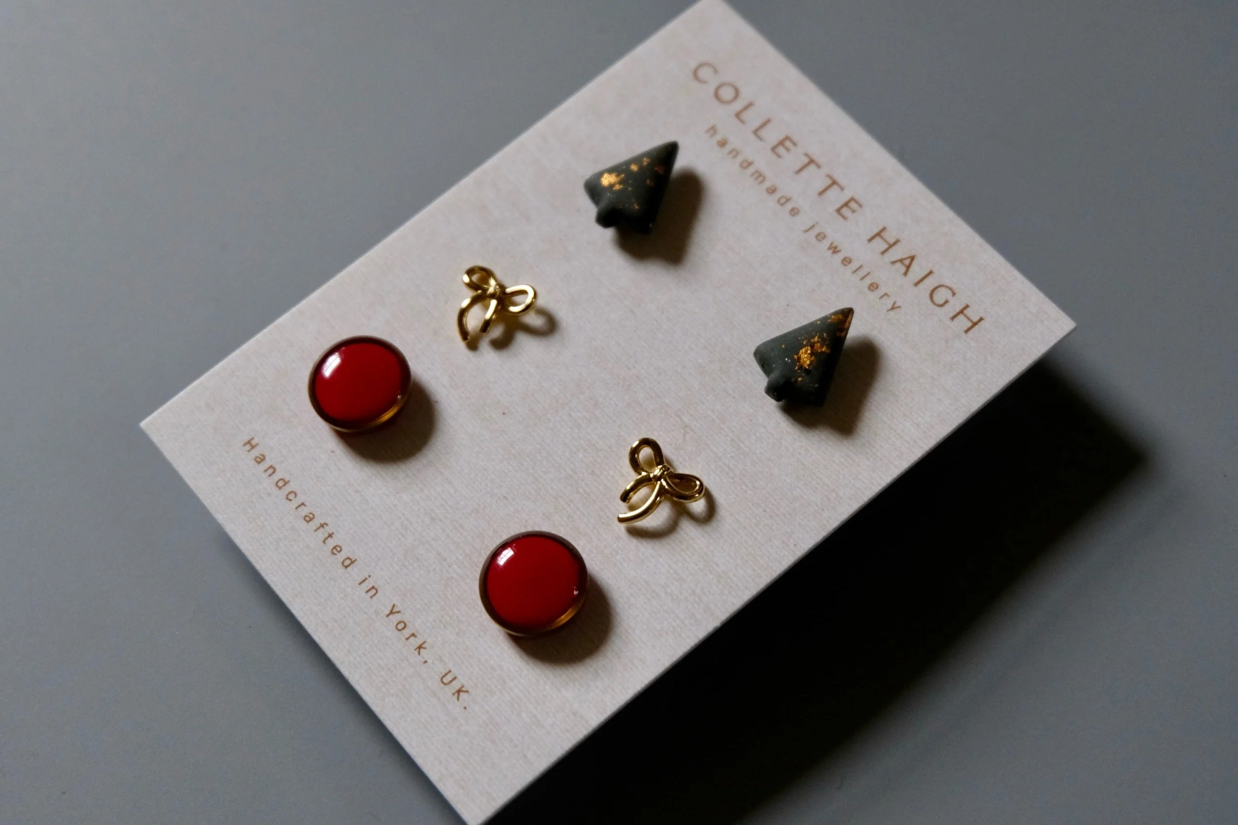 Each pair is made from polymer clay, ensuring durability and comfort for everyday wear. The bows are delicately shaped and securely attached via a ballpoint hoop, making them easy to wear.